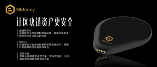 现在国内市场上有一款这样的钱包,基于金融级安全芯片,在银行U盾使用的安全芯片基础上专为区块链进行了优化,即使设备丢失,黑客也无法导出私钥信息。内建智能卡安全操系统,隔绝针对存储和签名的各种攻击。冷热端双端分离构成安全双保险,无法通过单端破解达到攻击目的。这就是BiMoney硬件钱包。
