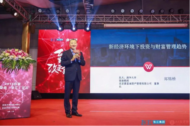 第二位演讲嘉宾是嘉富诚资产管理股份有限公司董事长郑锦桥先生,他在现场做了《新经济下投资与财富管理趋势》为主题的趋势说。