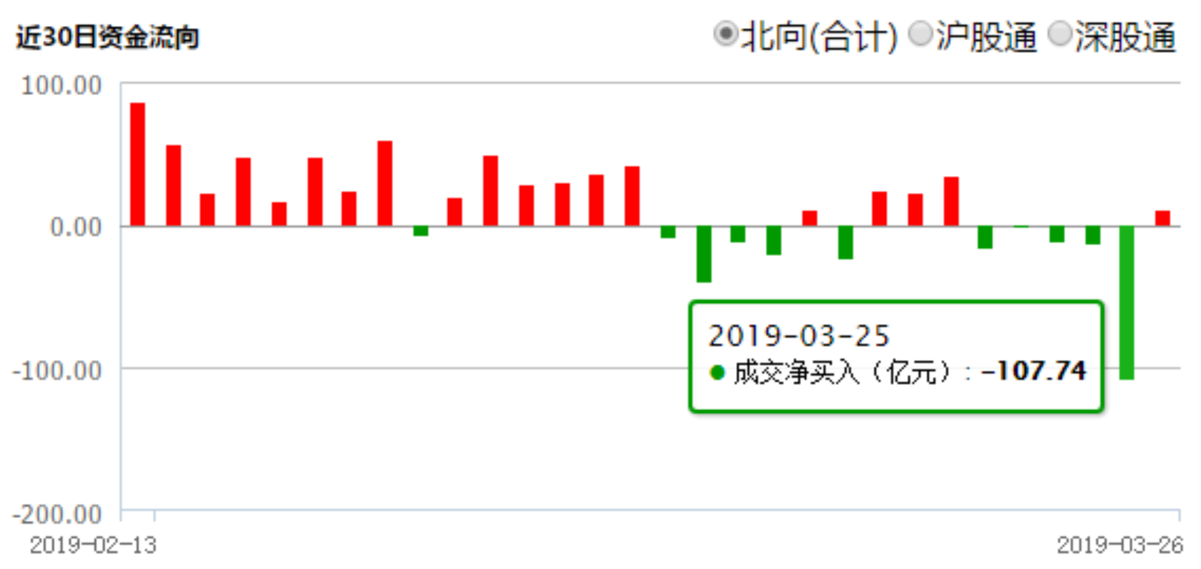 如果说 “买买买”是2019年头两个月北上资金的主基调,那么自2019年3月6日以来,“卖卖卖”则是近段时间北上资金的主基调。数据显示,2019年头两个月陆股通资金总体极少出现净卖出的情形,2019年1月和2月,陆股通分别累计净买入606.88亿元和603.92亿元。但自3月6日以来,北上陆股通资金则频现净卖出,至今已累计净卖出163.90亿元。3月6日至26日的14个交易日,就有10个交易日呈现净卖出。