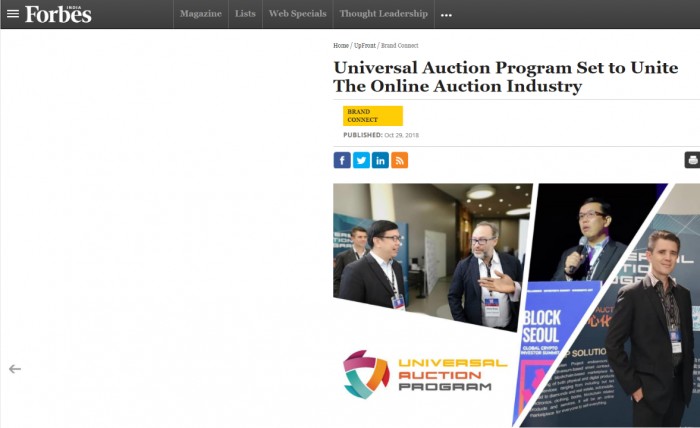 福布斯印度大篇幅刊发了关于星钻科技与环球拍卖平台UAP联合打造加密生态系统概念的公司新闻《Universal Auction Program Set to Unite The Online Auction Industry》。