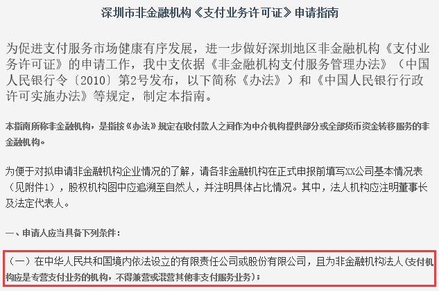 从此次主体迁移中可以看到腾讯对合规性的重视。此前央行深圳中心支行在“深圳市非金融机构《支付业务许可证》申请指南”便提出:支付机构应是专营支付业务的机构,不得兼营或混营其他非支付服务业务。