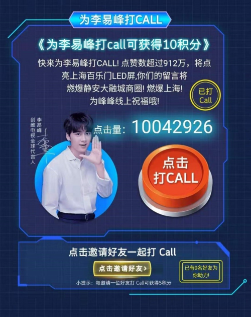这边厢玩的热火朝天,那边的百乐门LED屏上也热闹非凡。经过蜜蜂们的用心打Call,点赞突破千万人次,成功点亮百乐门LED大屏。峰狂燃爱,燃爆大上海。