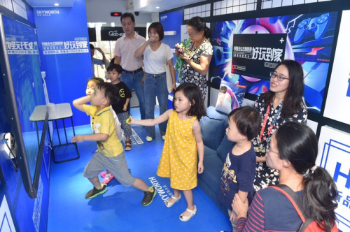 搭载智能AI语言系统的创维全生态智慧屏,与玩家们一起挑战游戏,如果是你,你能打败AI吗?看现场玩家们的架势,一个个都势在必得。当然,除了AI大挑战,现场还可以体验到创维全生态智慧屏家电物联功能,无需联网,轻松指令,一键开启全家智能微生活,真正好玩到家。