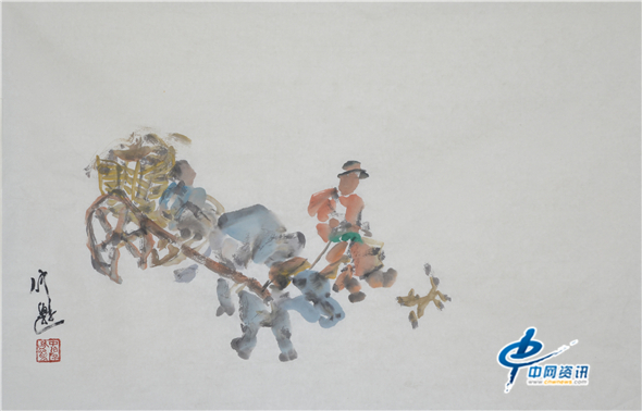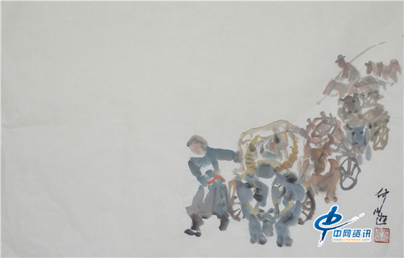 第十五张图片:跟着牛车后面的马群(仲泊游速写作品)
