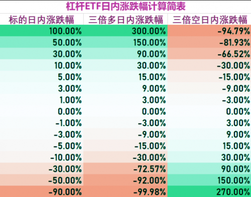 根据抹茶平台的再平衡机制提供的ETF日内涨跌幅计算表来看,在不确定走势的极端行情下,多空双开可能起到避险甚至小幅度盈利的特殊效果: