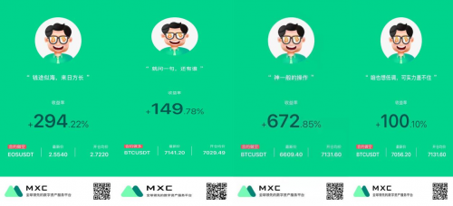 而随MXC抹茶App合约的正式上线,加之最近一周的比特币小幅震荡。最近两天比特币再次下跌,导致合约市场相对冷门,只比现货市场好上那么一点。逐步有投资者在微博、朋友圈等社交媒体上,晒出自己在抹茶的合约收益率。