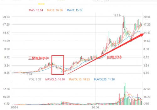 在企业发展过程中由于不同因素往往时隔一段时间就会出现一次困境,或是受板块利空波及,或是的确存在负面新闻或者黑稿,我们举几个例子: