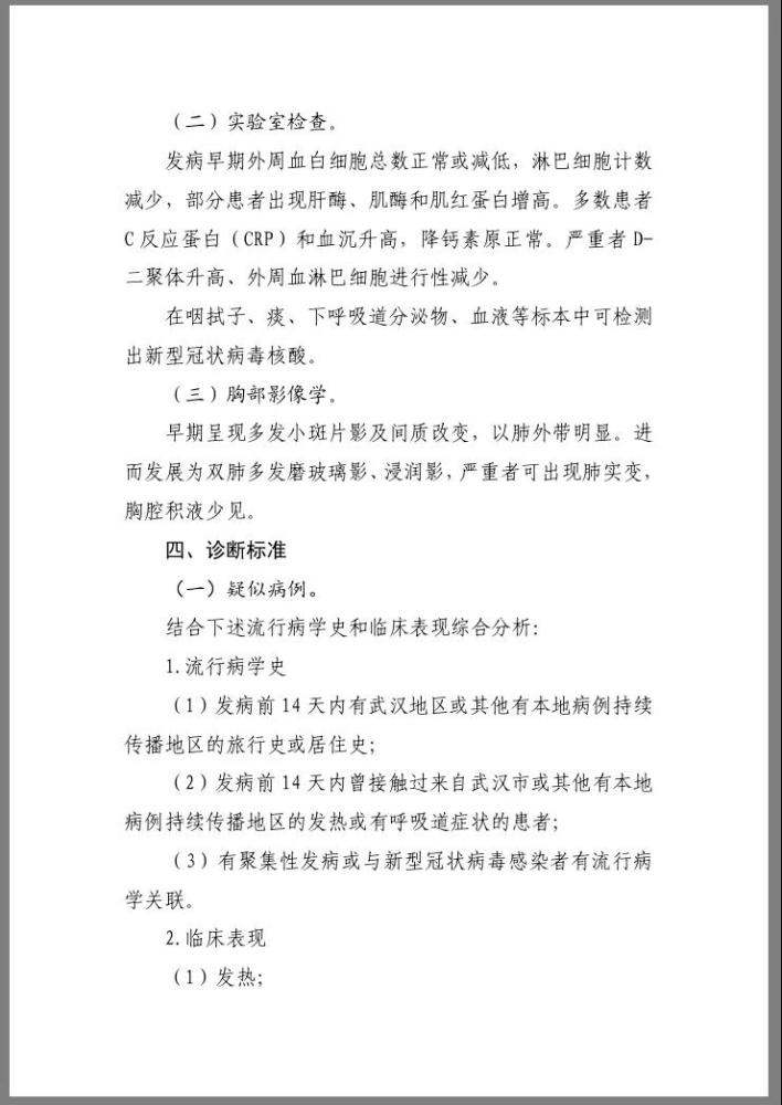 《新型冠状病毒感染的肺炎诊疗方案(试行第四版)》