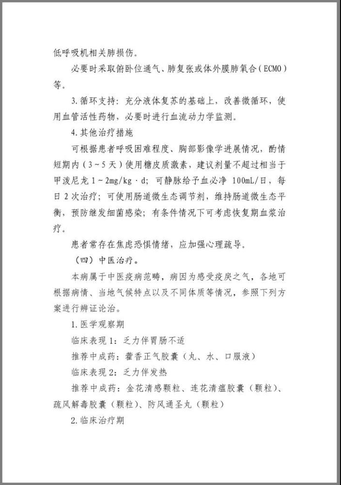 为进一步做好新型冠状病毒感染的肺炎病例诊断和医疗救治工作,我们组织专家对诊疗方案进行修订,形成了《新型冠状病毒感染的肺炎诊疗方案(试行第四版)》。现印发给你们,请参照执行。各有关医疗机构要在医疗救治工作中积极发挥中医药作用,加强中西医结合,建立中西医联合会诊制度,促进医疗救治取得良好效果。
