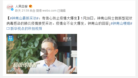 1月28日,钟南山院士就新型冠状病毒感染的肺炎疫情接受采访。疫情会不会大爆发,钟南山的回答