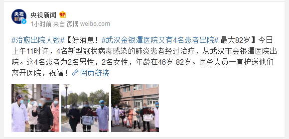 好消息!武汉金银潭医院又有4名患者出院,最大82岁