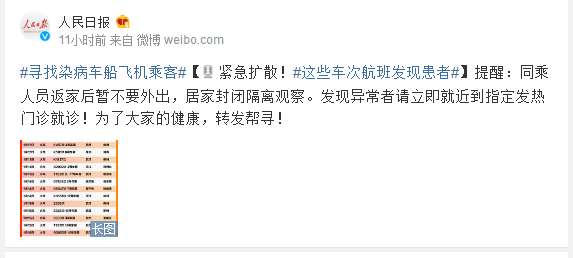 寻找染病车船飞机乘客:紧急扩散!这些车次航班发现患者