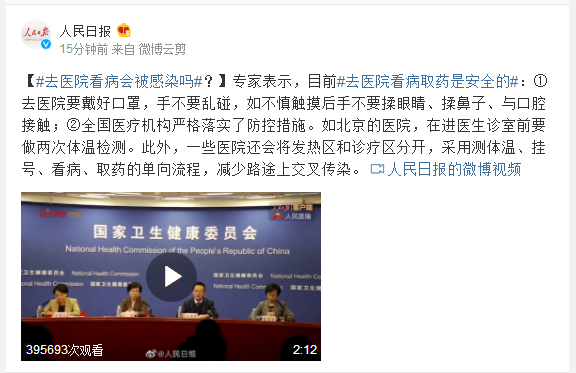 专家表示,目前#去医院看病取药是安全的#:①去医院要戴好口罩,手不要乱碰,如不慎触摸后手不要揉眼睛、揉鼻子、与口腔接触;②全国医疗机构严格落实了防控措施。如北京的医院,在进医生诊室前要做两次体温检测。此外,一些医院还会将发热区和诊疗区分开,采用测体温、挂号、看病、取药的单向流程,减少路途上交叉传染。