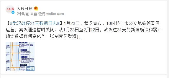 1月23日,武汉宣布,10时起全市公交地铁等暂停运营;离汉通道暂时关闭。从1月23日至2月22日,武汉这31天的新增确诊和累计确诊数据有何变化?一张图带你看清。