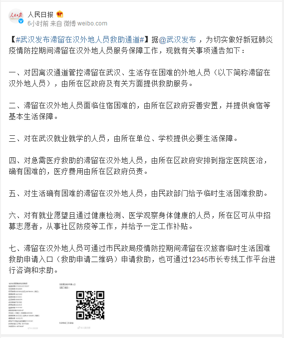 据@武汉发布 ,为切实做好新冠肺炎疫情防控期间滞留在汉外地人员服务保障工作,现就有关事项通告如下: