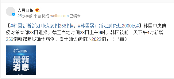 韩国中央防疫对策本部28日通报,截至当地时间28日上午9时,韩国较前一天下午4时新增256例新冠肺炎确诊病例,累计确诊病例达2022例。(马菲)