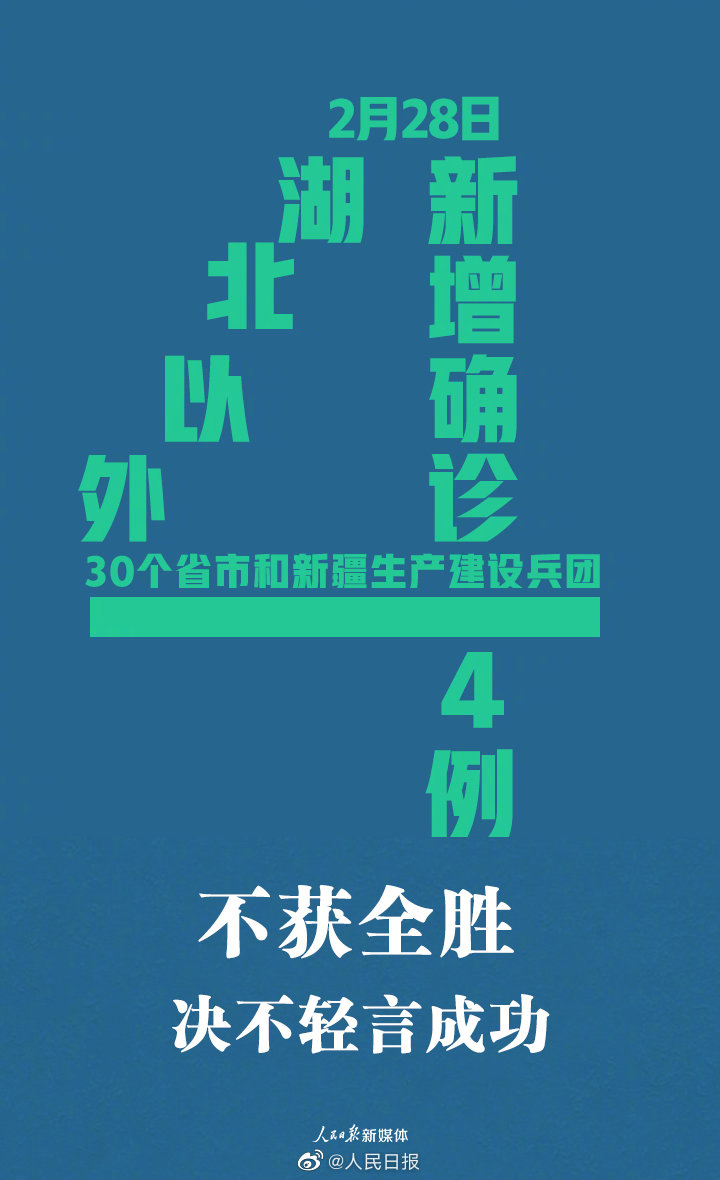 据国家卫健委数据统计,2月28日0—24时,湖北以外30个省(自治区、直辖市)和新疆生产建设兵团报告新增确诊病例4例。