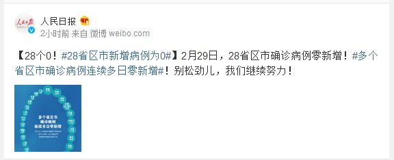 2月29日,28省区市确诊病例零新增!#多个省区市确诊病例连续多日零新增#!别松劲儿,我们继续努力!