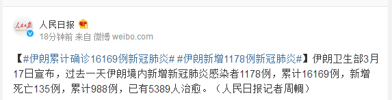 3月17日伊朗累计确诊16169例新冠肺炎 伊朗新增1178例新冠肺炎