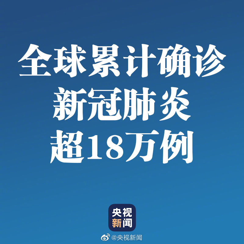 世卫组织统计数据显示,截至欧洲中部时间17日16时(北京时间17日23时),全球新冠肺炎确诊病例累计达到184976例,死亡病例7529例,已报告病例的国家和地区达159个。(总台记者朱赫)