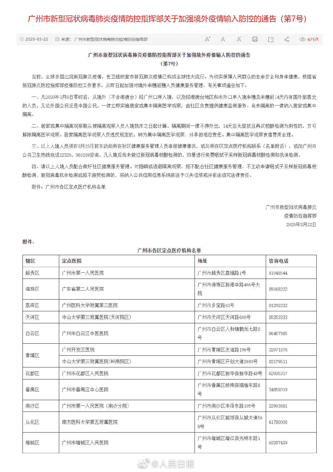 凡2020年3月8日零时后,从境外(不含港澳台)经广州口岸入境,以及经港澳台地区和市外口岸入境来穗且来穗前14天内有国外旅居史的人员,无论外国公民还是中国公民,一律立即实施居家或集中隔离医学观察,由社区负责提供健康监测服务。尚未隔离的一律纳入居家或集中隔离。凡入境后尚未做过新冠病毒核酸检测的,均要进行免费咽拭子采样新冠病毒核酸检测和抗体检测。