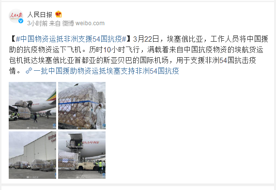 中国物资运抵非洲支援54国抗疫