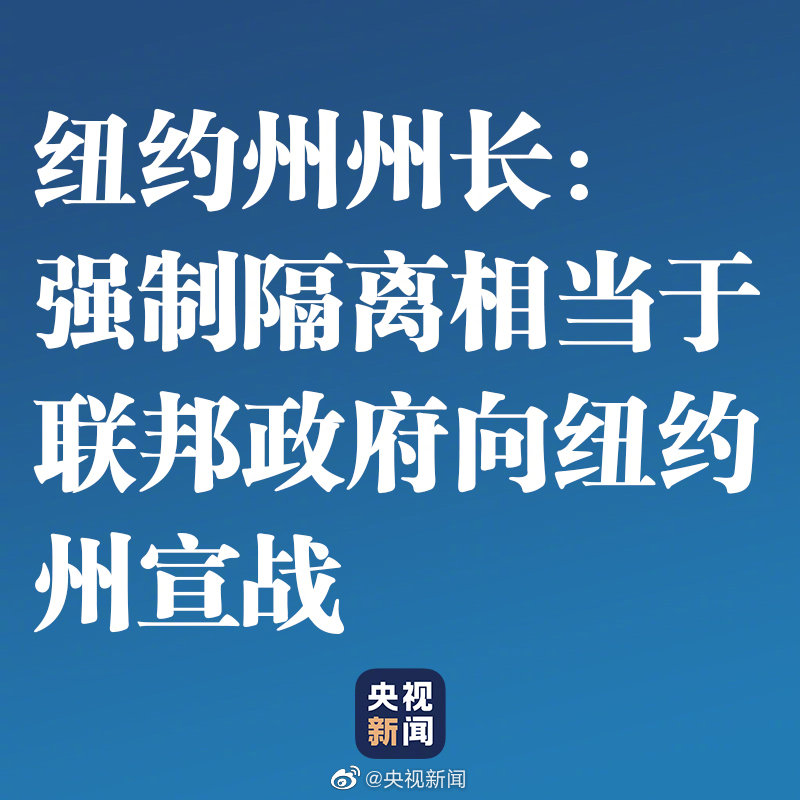 美国总统特朗普28日表示,目前正考虑对纽约州、以及新泽西州和康涅狄格州部分地区强制隔离2周,以避免这些重灾区疫情扩散。对此,纽约州州长科莫随后对媒体表示,他认为这么做不可行也不合法,而且会造成完全的混乱和恐慌,相当于“联邦政府向这些州宣战”。(央视记者王逢治)