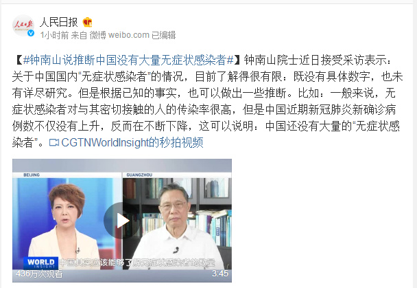 钟南山院士近日接受采访表示:关于中国国内“无症状感染者”的情况,目前了解得很有限:既没有具体数字,也未有详尽研究。但是根据已知的事实,也可以做出一些推断。比如:一般来说,无症状感染者对与其密切接触的人的传染率很高,但是中国近期新冠肺炎新确诊病例数不仅没有上升,反而在不断下降,这可以说明:中国还没有大量的“无症状感染者”。