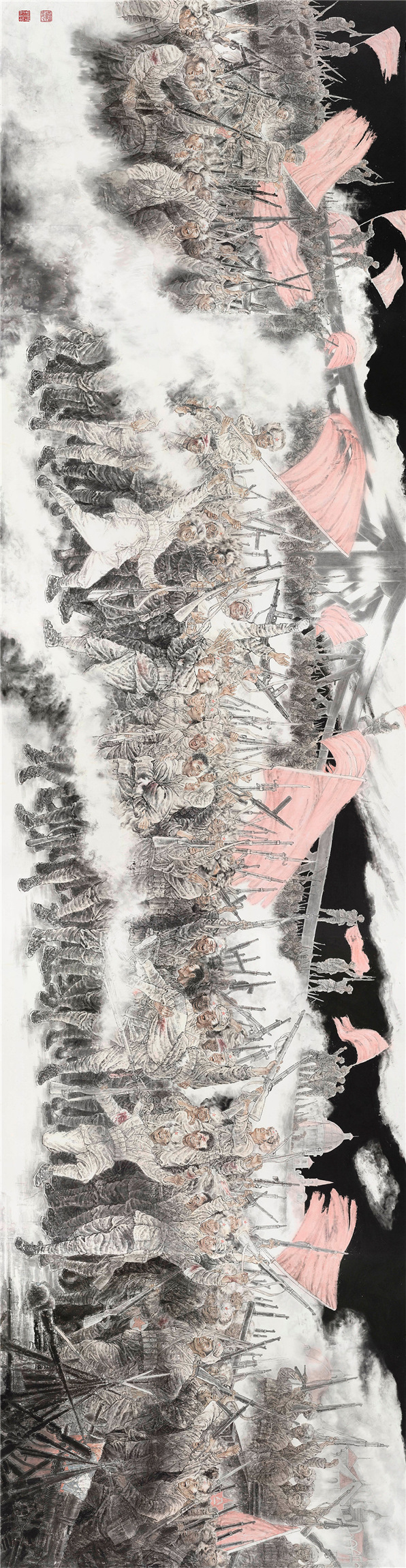 参加这次展览活动的主创人员32名,他们既有退休将校军官,也有在职军人;既有转业军人,也有退伍战士。尽管军龄各异,官阶迥然,但崇敬英雄,热爱军队的豪情别无二致。大笔如椽、浓墨重彩的90多幅作品,深情礼赞人民军队的奋斗历程、伟大业绩、精神丰碑,呈现出了崭新的艺术风貌。此次展览既是一次军旅文化的大聚会,更是向建军节献上一份情真意切的厚礼!