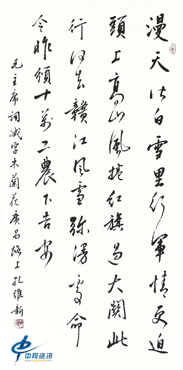 孔维新,山东滕州人,天津市书法家协会会员。现为市文化市场行政执法总队二级巡视员。1979年入伍,先后在驻津某坦克师和天津警备区政治部工作,曾任河西区委常委,人武部政委。