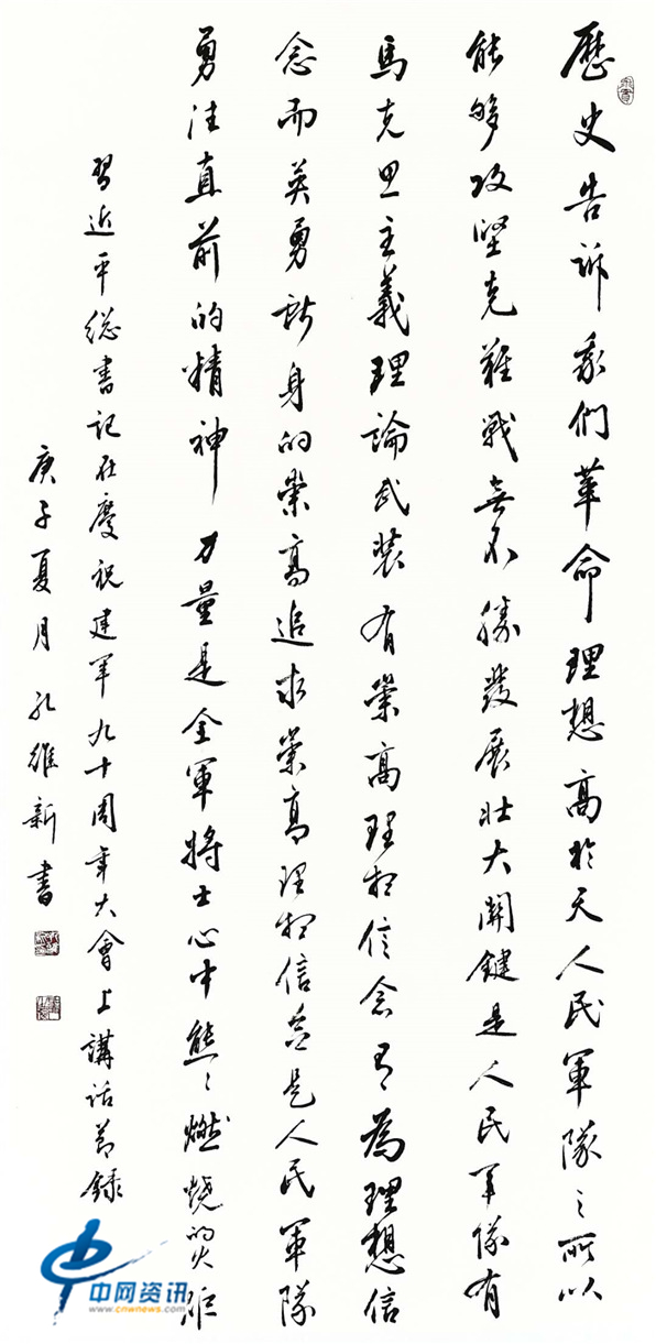 为贯彻习近平主席的强军思想,讴歌人民军队的丰功伟绩,弘扬人民军队的优良传统,赞颂军民鱼水情深,由天津画院主办的“纪念中国人民解放军建军93周年书画作品展”以线上展的形式隆重推出了。