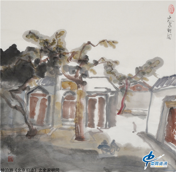 【中网资讯】仲泊游多年来收集、写生、创作了《北京旧迹》百辑水墨画稿,以此回望北京这座都城悠久历史与人文的记忆。