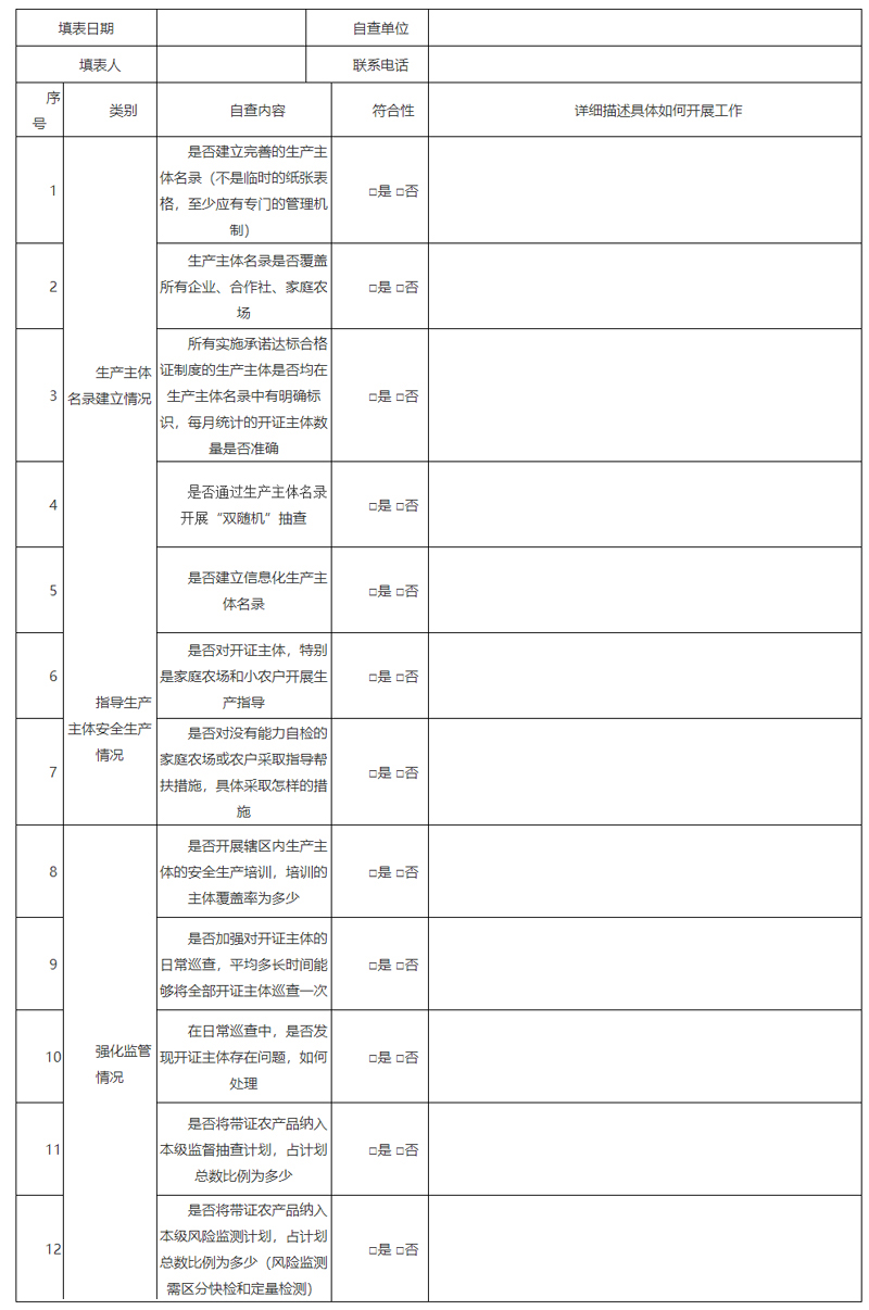 承诺达标合格证制度实施情况自查表