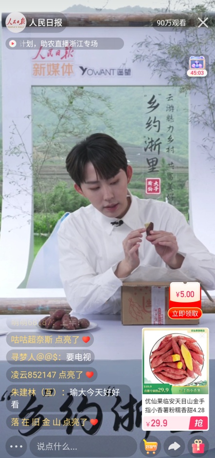 “我自己就是浙江人,很高兴能作为这次活动的主播,为自己家乡的农副产品‘代言’,希望通过这样的活动,把家乡的好货宝藏带给大家,让更多人感受到浙‘乡’魅力,为家乡的乡村振兴贡献一份自己的力量。”瑜大公子在直播现场如是说。