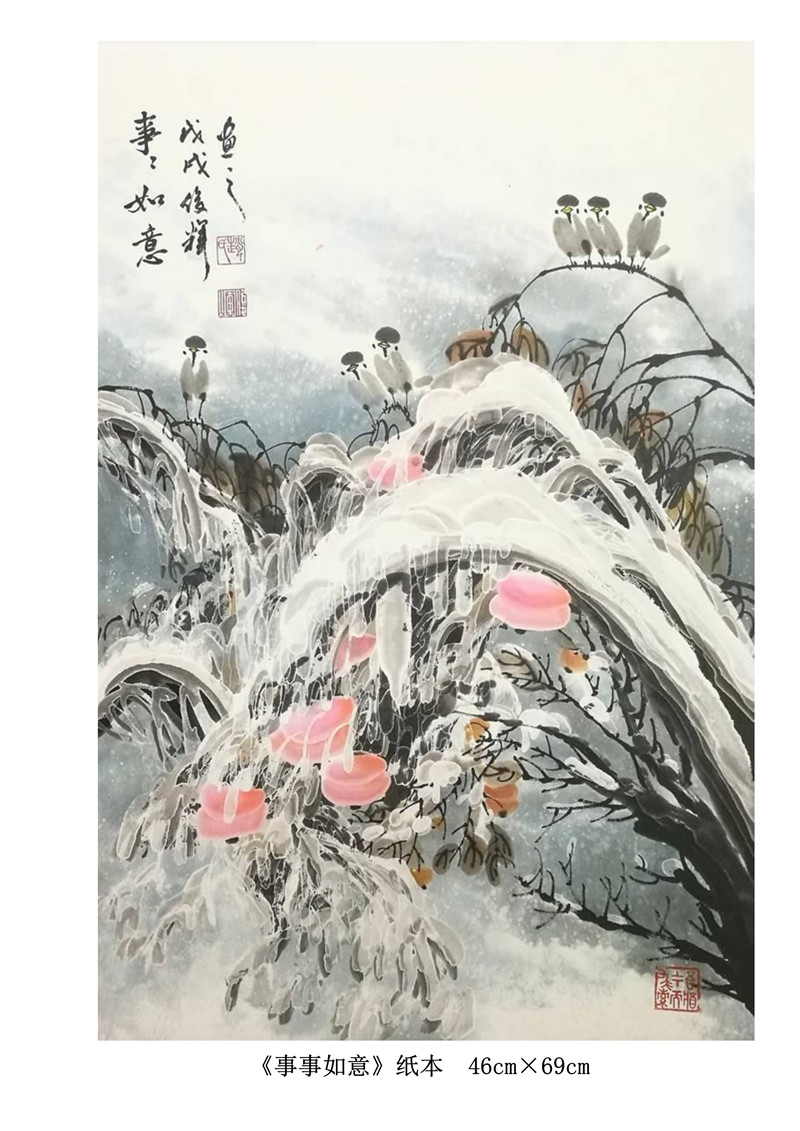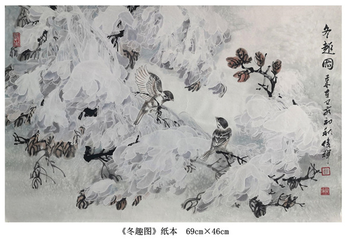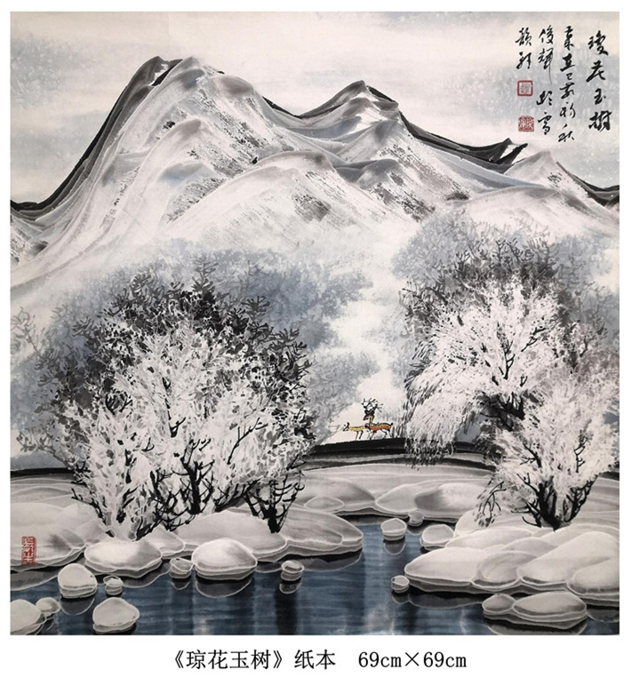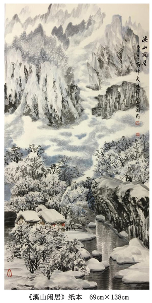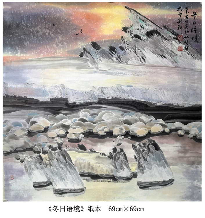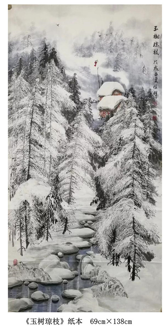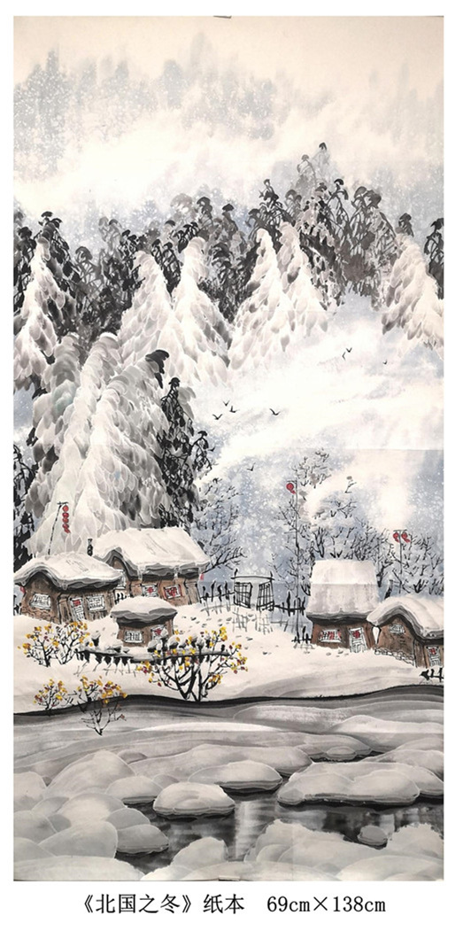 “我的国画创作还是以冰雪山水为主,在这基础上学习其他艺术大家的先进艺术理念和优秀技法,尝试着用融合后的新的技法技巧来表现伊春的雪国世界和北方冰雪冰清玉洁的冷逸之美。”赵俊辉在学习国画过程中,既传承于志学先生技法创新的冰雪山水,又潜心于卢禹舜老师的传统笔墨创新。